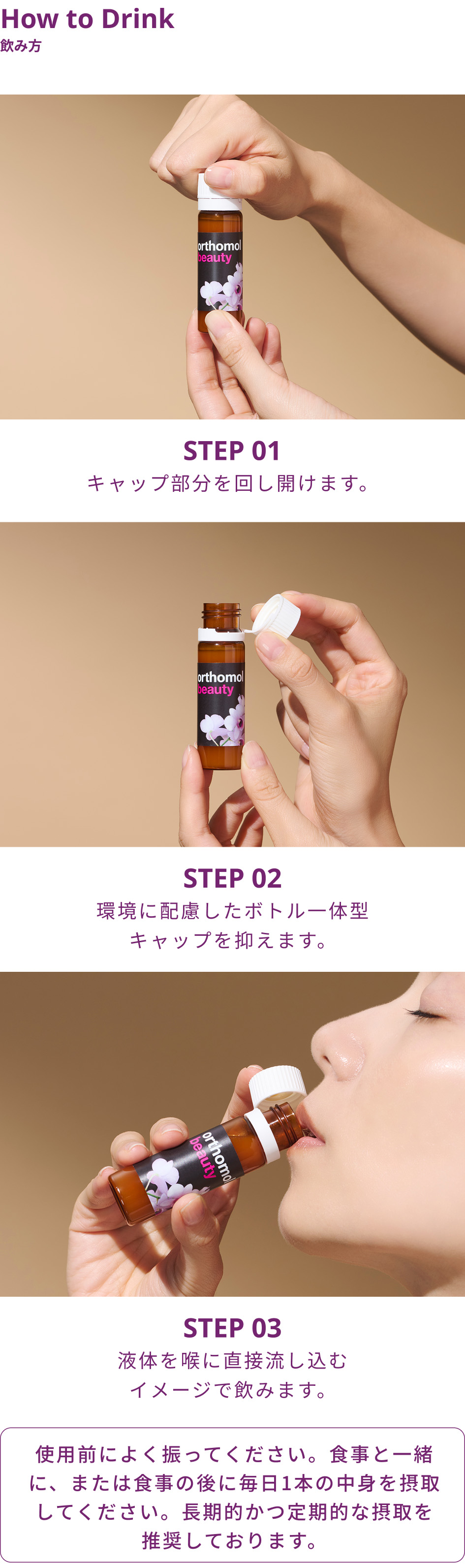 栄養学と科学的知見に基づきながらも、自然のメカニズムに着想を得て設計されたプレミアム・ビューティドリンクです。